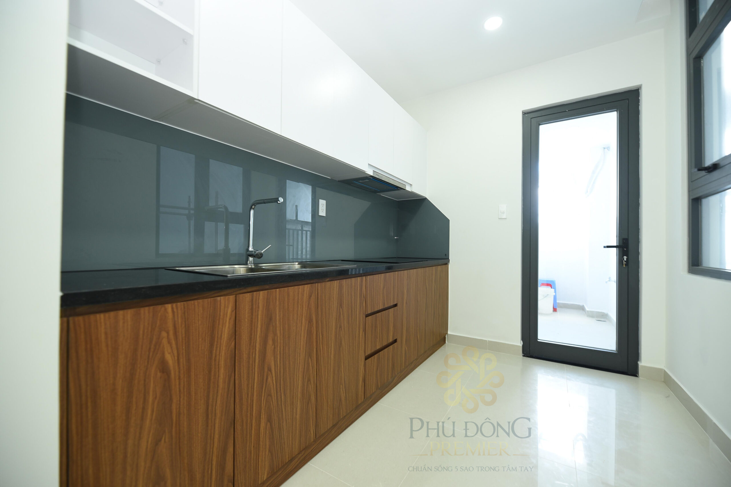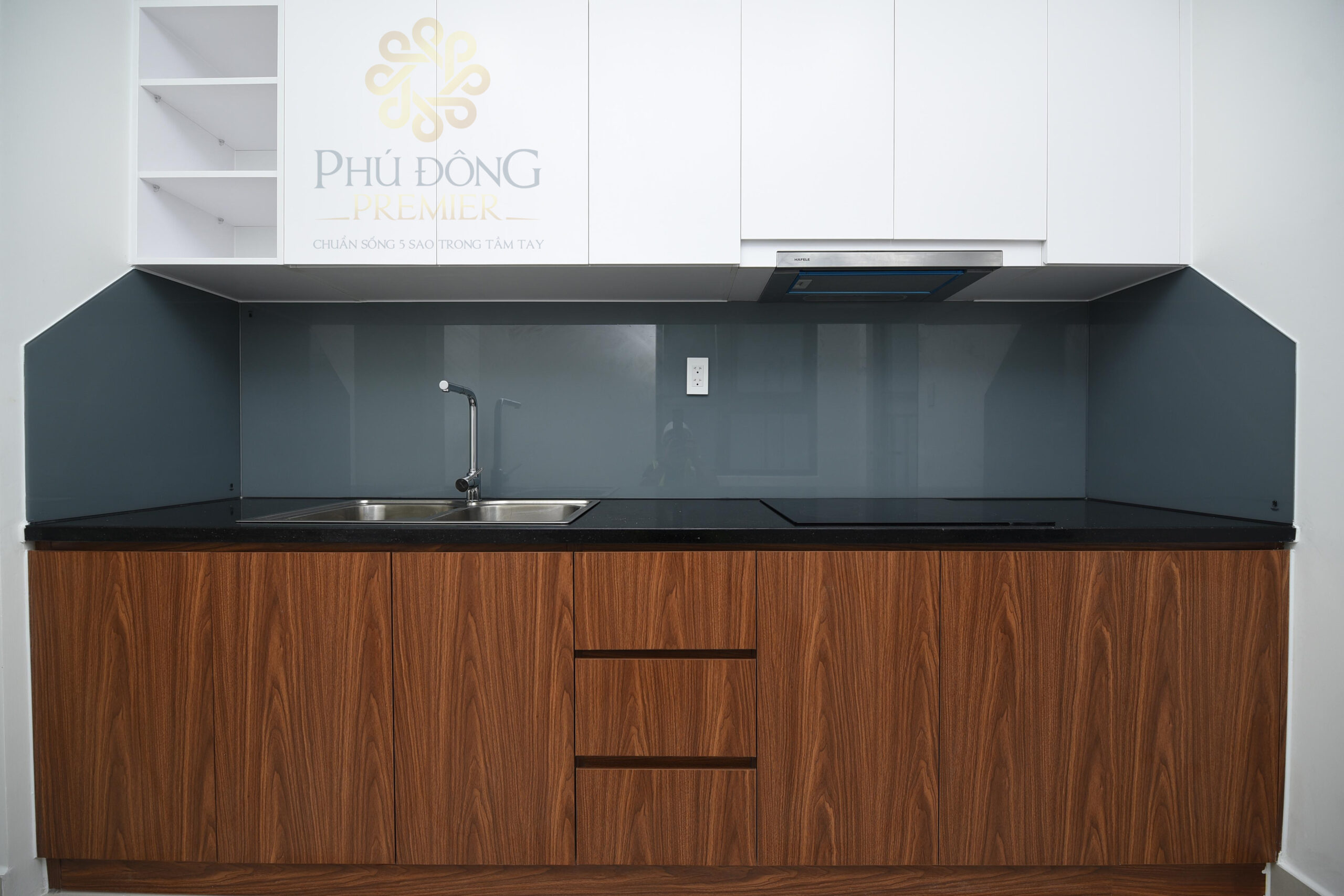 Gian bếp của dự án trong căn hộ Phú Đông Premier sử dụng các thiết bị cao cấp từ thương hiệu Hefele của Đức.