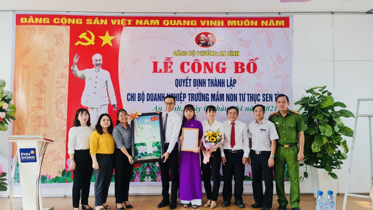 Sáng ngày 2/4/2021, Đảng bộ phường An Bình tổ chức lễ công bố quyết định thành lập Chi bộ Doanh nghiệp Trường mầm non tư thục Sen Tím.