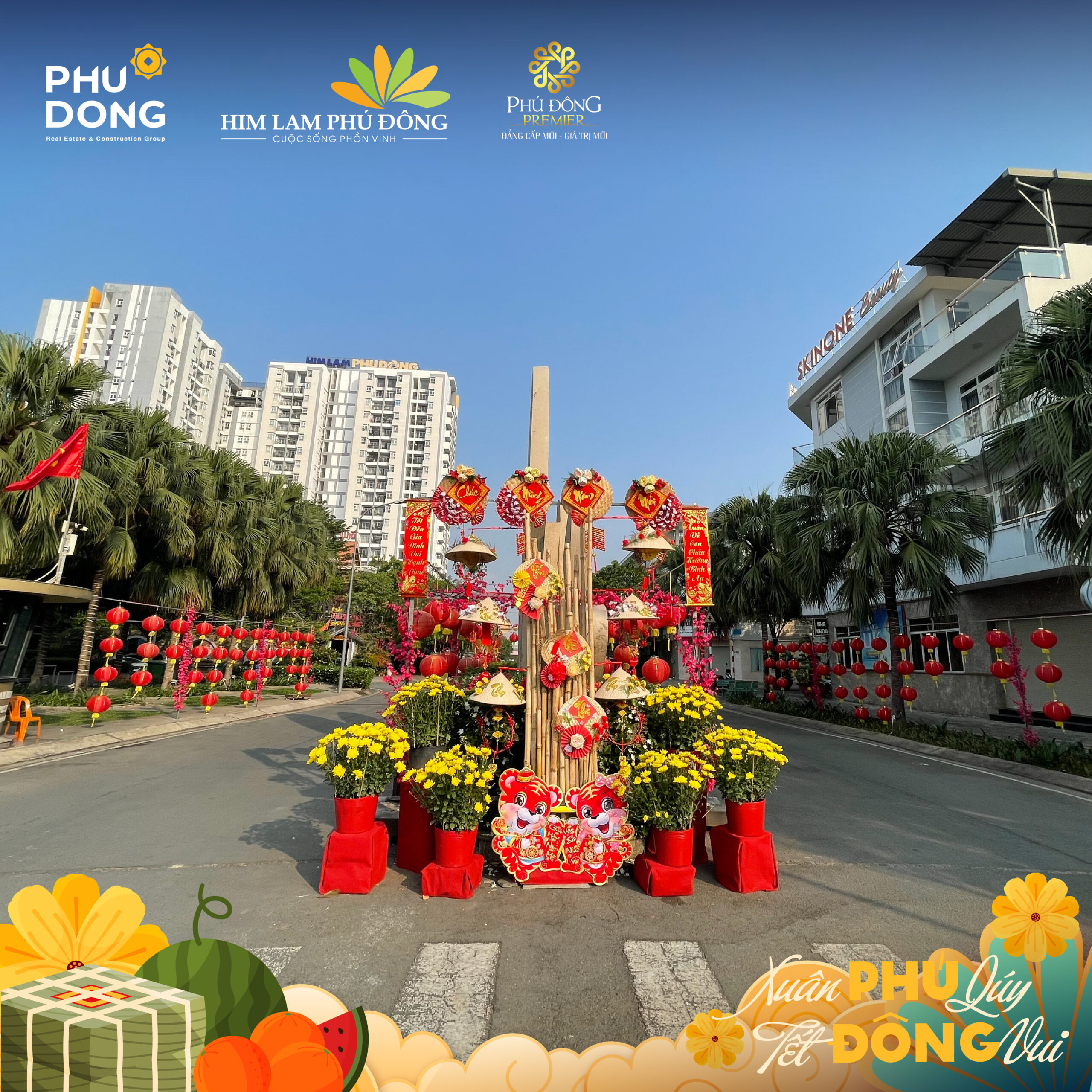 Các dự án của Phú Đông Group như KDC Phú Đông, chung cư HL Phú Đông, KCH Phú Đông Premier vào những ngày này, cư dân sẽ cảm nhận rõ nét không khí tết xưa, đầm ấm, thân quen với đầy đủ sắc đỏ của hoa đào, của pháo tết, sắc vàng của hoa mai, hoa cúc…