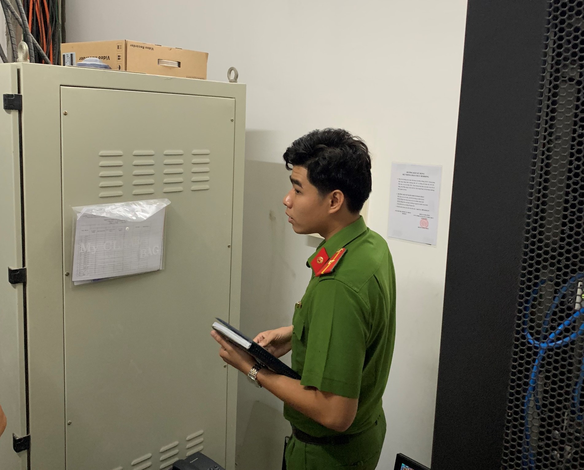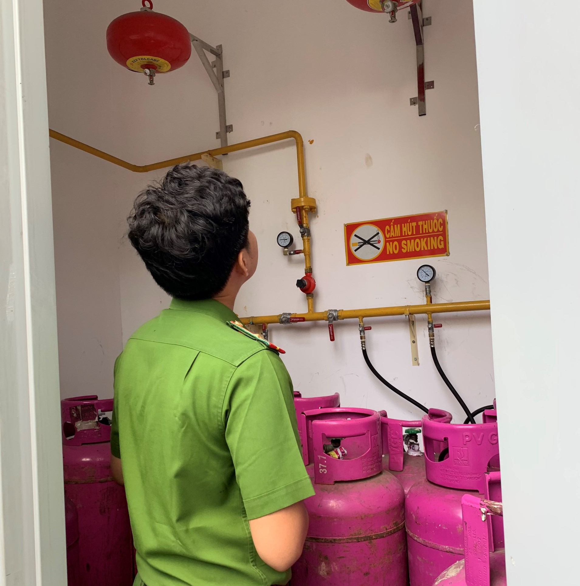 Đoàn kiểm tra gồm có: Thiếu úy Lương Quốc Đạt – Cán bộ Đội CS PCCC & CHCN, Thiếu úy Phạm Minh Cường – Cán bộ Đội CS PCCC & CHCN.