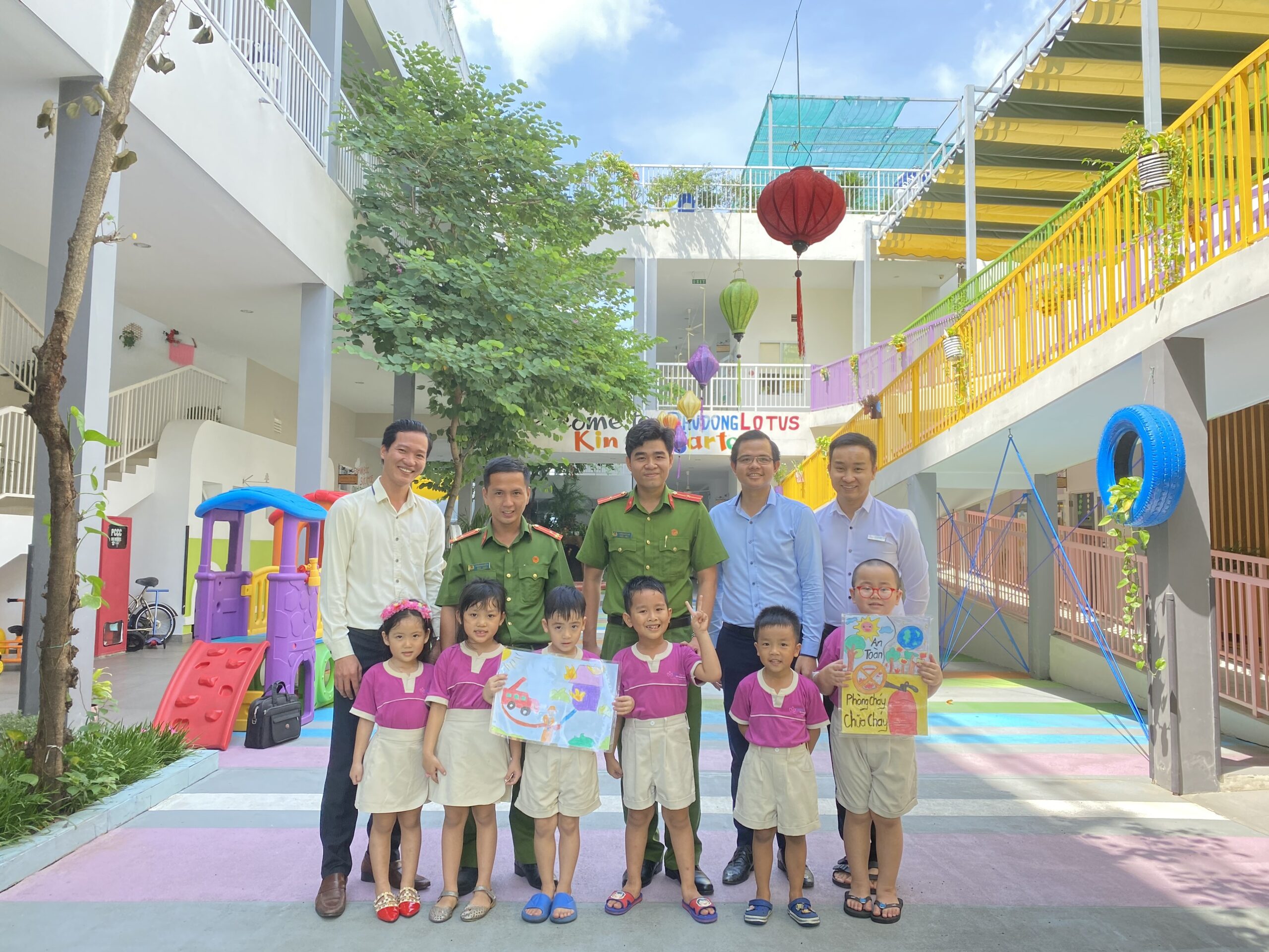Cuối buổi kiểm tra, các cán bộ đã nhận được phần quà bất ngờ từ các bạn nhỏ của trường Phú Đông Lotus. Các bé đã tự tay vẽ nên những bức tranh với chủ đề PCCC để tặng chú công an.