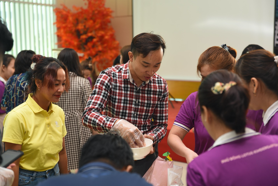 Bên cạnh những đôi bàn tay gói bánh hết sức điệu nghệ, cũng có những thành viên lần đầu tập tành làm món bánh truyền thống này. Thế nhưng, điều đó chẳng phải là khó khăn khi bên cạnh những “thí sinh” luôn có đồng đội bên cạnh hỗ trợ kịp thời, hướng dẫn tận tình và ngọn lửa tinh thần thi đấu “hết mình”. Được hòa mình vào ngày hội gói bánh truyền thống của Phú Đông Group, không khí tết dường như đến sớm hơn, trong khi đôi tay chăm chút tỉ mẩn bên lá chuối, nếp, thịt mỡ để làm nên chiếc bánh tết đầy chất lượng, thì gương mặt ai cũng ánh lên nụ cười rạng rỡ, chuyện trò rôm rả khắp nơi.