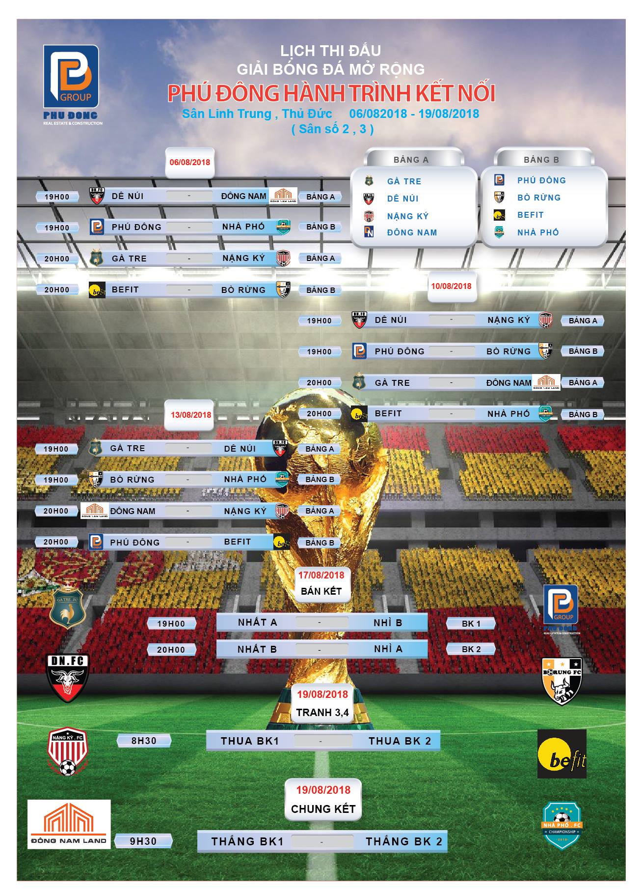 Giải đá bóng Phú Đông Cup tới đây là lần đầu tiên được tổ chức với sự quyết tâm và nhiệt huyết của toàn thể cư dân. Chủ đầu tư Phú Đông Group tài trợ toàn bộ chi phí tổ chức giải đấu, đồng thời còn có sự hỗ trợ đến từ Trung tâm thể dục thể thao Befit và Sàn giao dịch BĐS Đông Nam Land. Giải đấu sẽ có 08 đội tham gia đến từ CĐT Phú Đông, cư dân khu căn hộ Him Lam Phú Đông, khu nhà phố và các hộ kinh doanh tại khu shophouse, được chia làm 02 bảng cụ thể như sau: