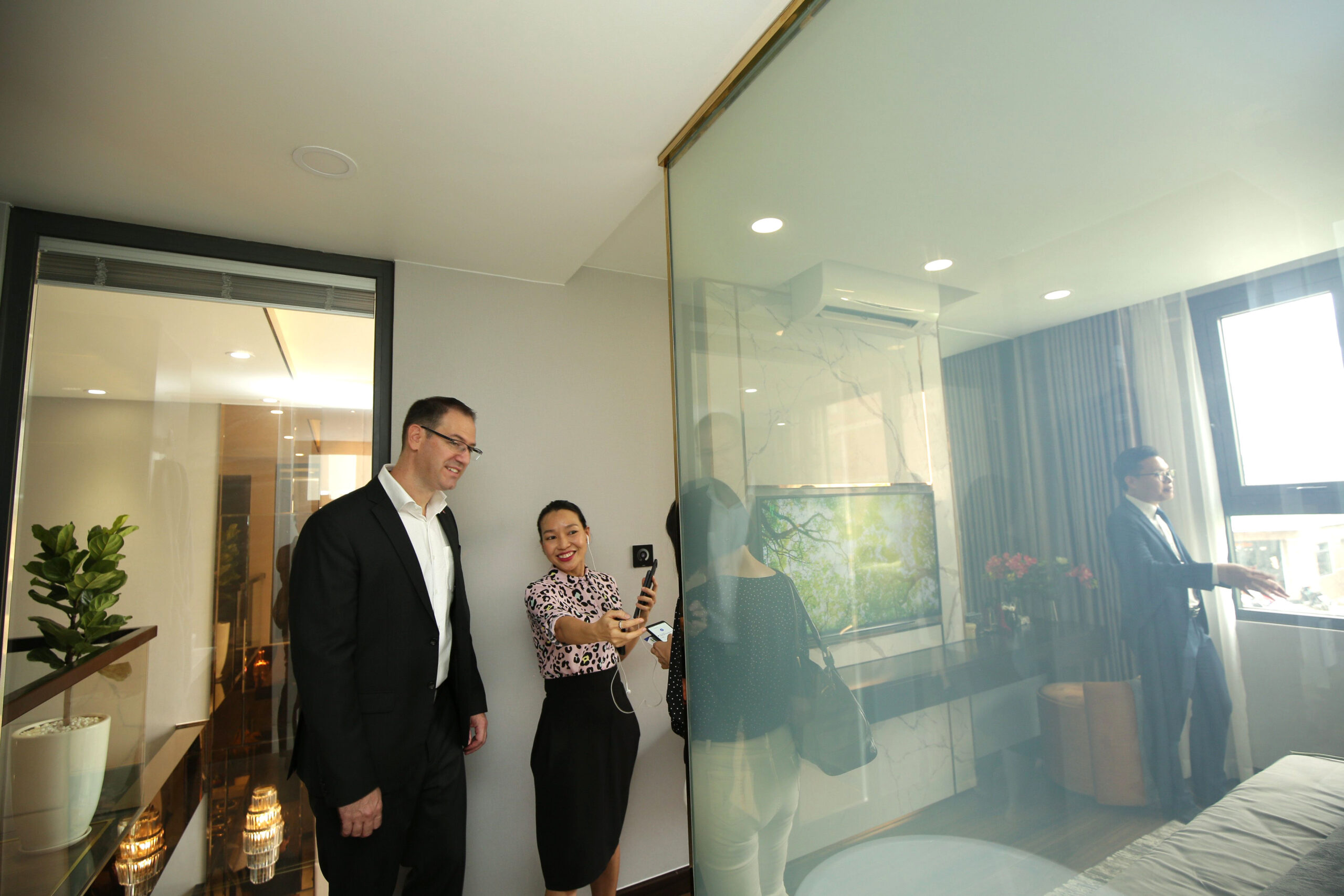 Đặc biệt, công trình căn hộ mẫu mới hứa hẹn mang đến trải nghiệm không gian sống vượt trội cho khách hàng nhờ vào việc áp dụng hệ thống tích hợp quản lý thông minh AI 4.0, chế độ khóa vân tay và mã số cảm ứng đảm bảo tính an toàn và tiện lợi khi sử dụng.