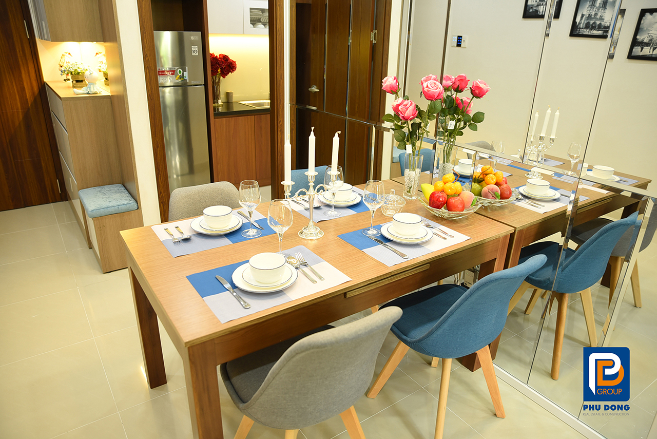 Được thiết kế dựa trên mặt bằng căn hộ hai phòng ngủ có khu vực bếp đóng, mẫu căn hộ này là một trong những gợi ý cho khách hàng của dự án Phú Đông Premier.