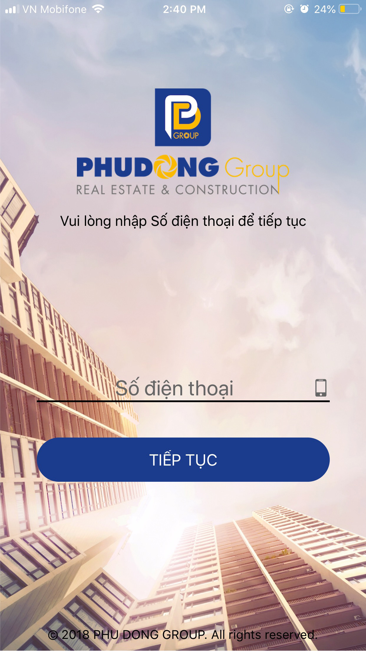 Bước 2: Sau khi phần mềm đã được cài đặt trên thiết bị thì sẽ hiển thị biểu tượng trên màn hình, bấm vào biểu tượng app để truy cập phần mềm, tại đây phần mềm sẽ yêu cầu nhập số điện thoại.