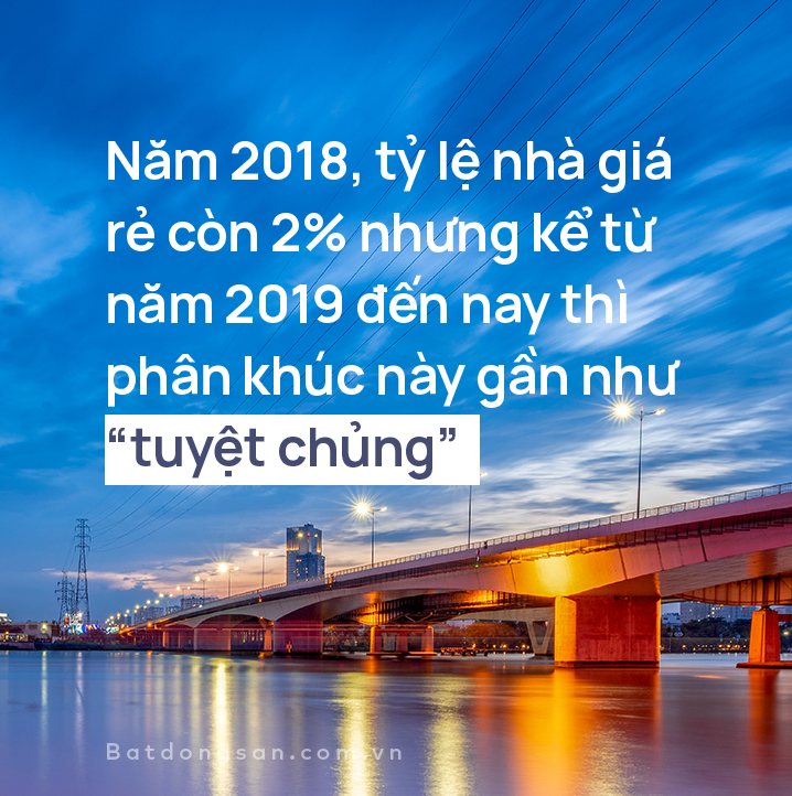 Ghi nhận thị trường, giá nhà đất tại TP.HCM liên tục tăng phi mã trong 5 năm qua. Theo thống kê của Hiệp hội Bất động sản TP.HCM, năm 2018, tỷ lệ nhà giá rẻ còn 2% nhưng kể từ năm 2019 đến nay thì phân khúc này gần như “tuyệt chủng”.