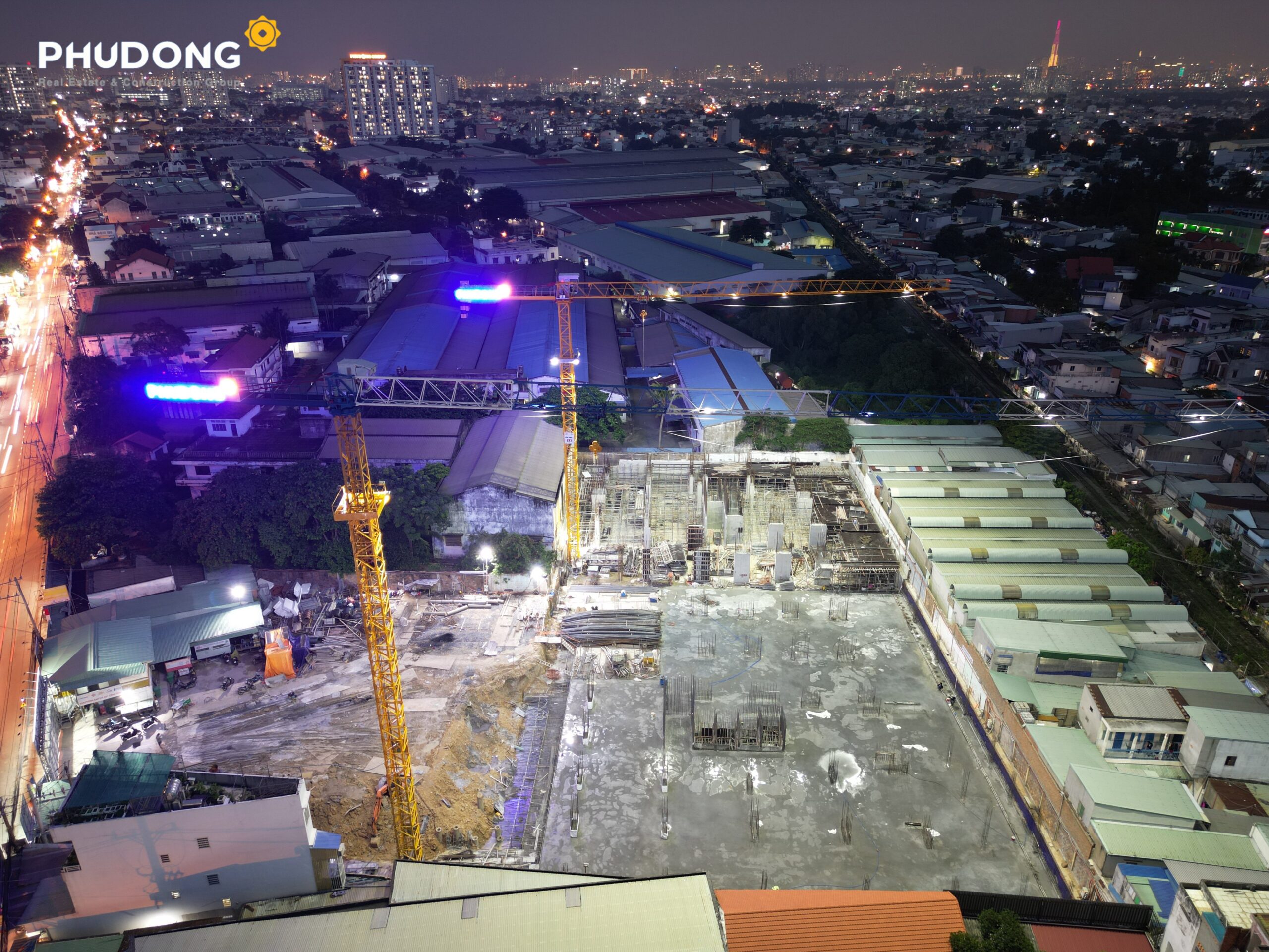 Hơn 3 tháng thi công, Phú Đông Sky Garden đã có những thay đổi rõ rệt qua từng ngày. Những cột thép nối tiếp nhau ngày một vươn cao, bám sát tiến độ hoàn thiện và nghiệm thu phần móng của cả công trình vào tháng 10/2022.