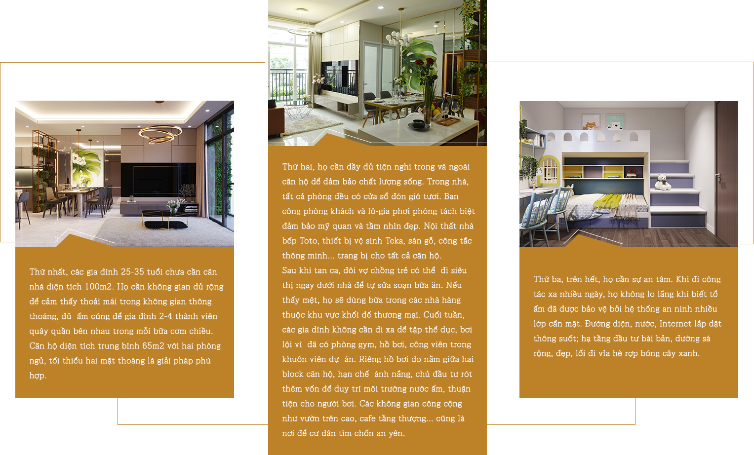Phúc chọn khai thác nhóm khách đầu tiên vì thấu hiểu rõ những khó khăn của giới trẻ khi mua nhà và đó cũng chính là những gì anh đã trải qua cách đây 10 năm. Đây là nhánh khó vì khách hàng chưa có tài chính dồi dào. Nhà phát triển phải chấp nhận hợp tác ngân hàng giải bài toán đi vay khá lớn của người mua, chấp nhận dòng tiền dài hơi hơn, lên đến 20 năm.